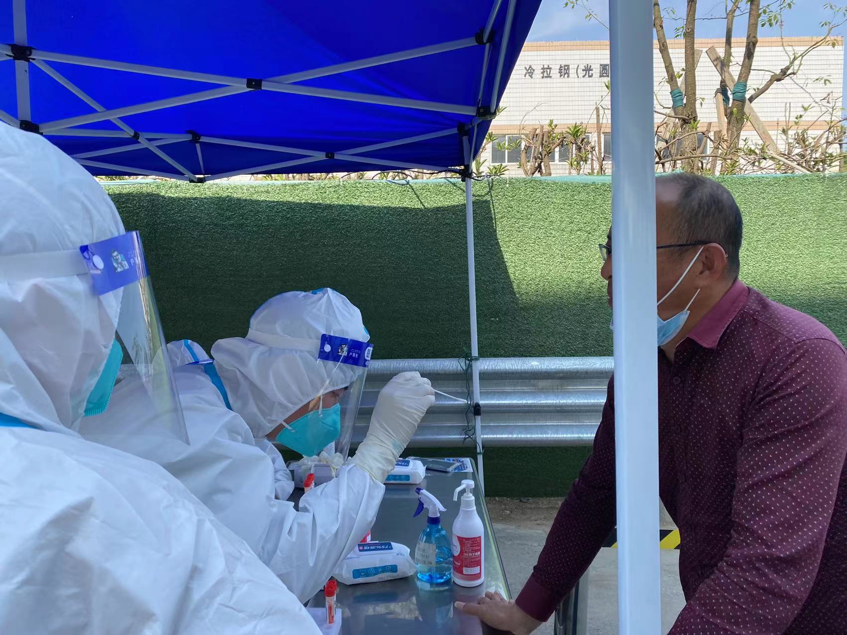 今天,妈妈跟我说,新冠疫情防控常态化下,为了方便老百姓做核酸,嘉善政府设置了几百个核酸检测点,其中妈妈公司门口也有一个点位,看,这里的核酸采样员和信息采集员“大白”们都是我妈妈公司的同事,他们来当志愿者,在医生的培训和监督下,已经可以给别人做核酸了。我长大了也要加入志愿者行列,献出自己的一份小力量。