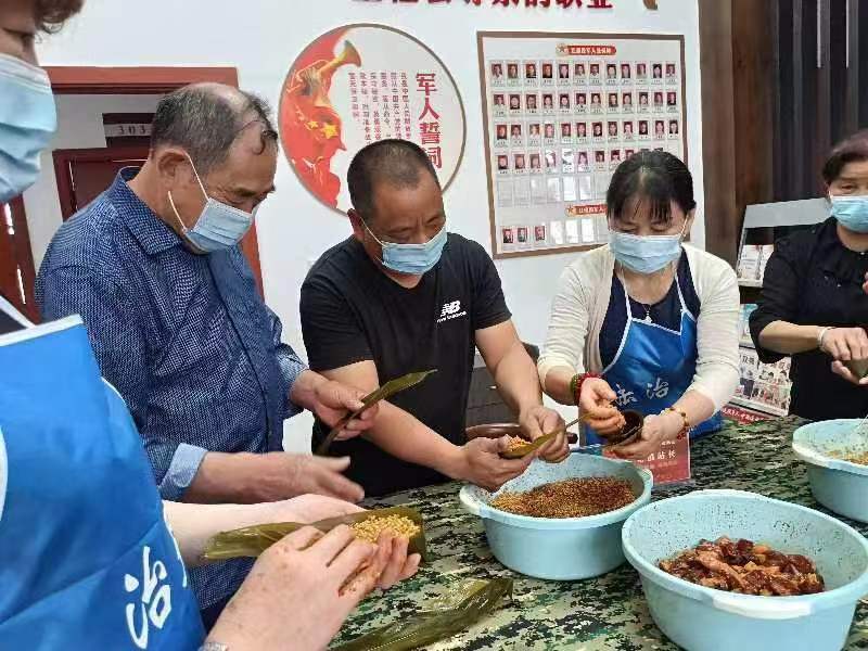 大家看,这是我们社区的退役军人服务站。今天邀请退伍军人代表开展“ ‘粽’情端午,温暖相伴”包粽子活动,社区退役军人服务站站长向退役军人们现场传授包粽子经验,此次活动不仅让大家感受到浓浓的节日氛围,同时增进了退役军人服务站和退役军人之间的感情,呈现了"家"的温暖。