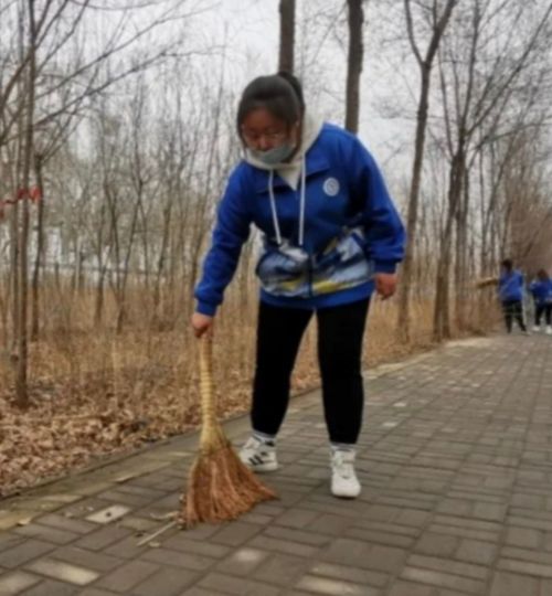 每天,她都会经过这条小路,只要路上有垃圾,他都会不由自主地拿起扫帚,给行人提供方便。